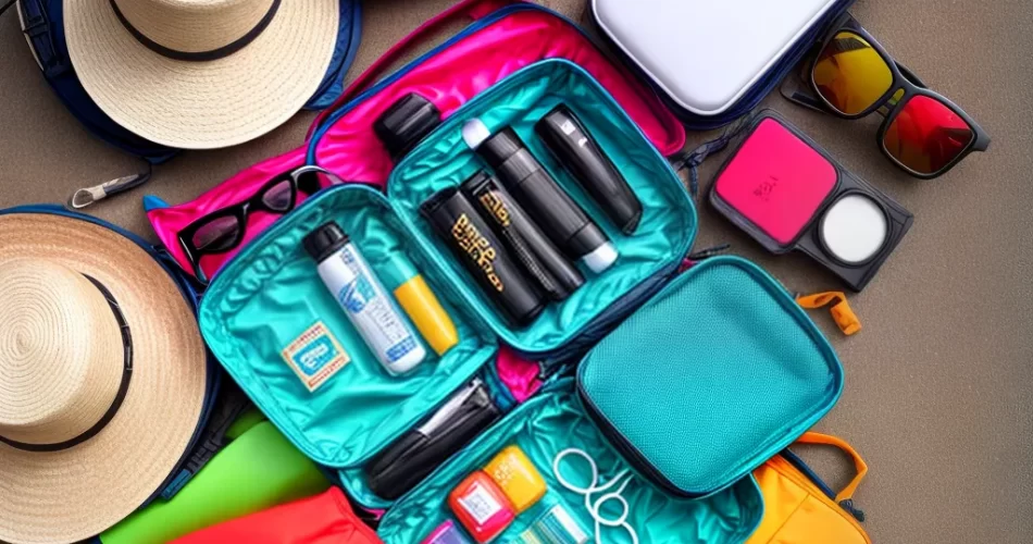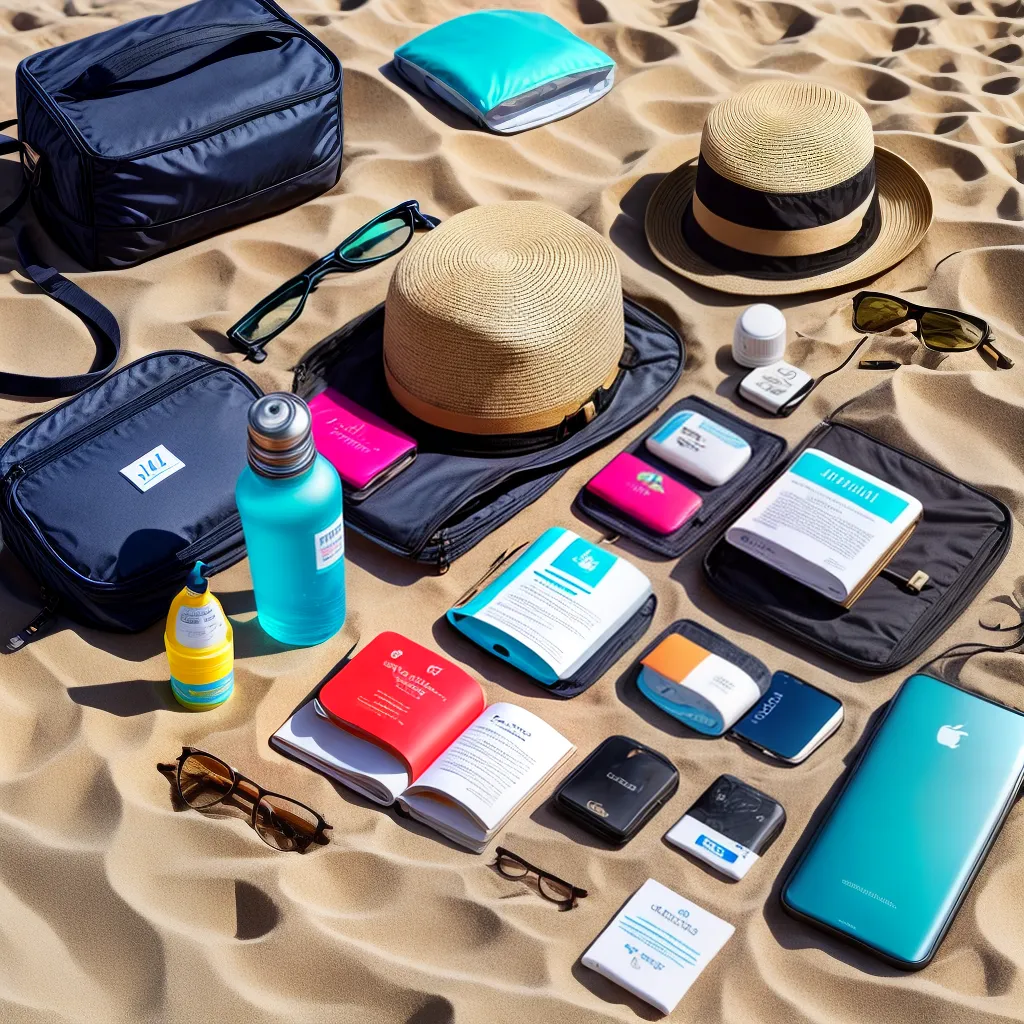 Itens essenciais para levar na bolsa de praia incluem protetor solar, toalha, chapéu ou boné, óculos de sol, água, lanches e dinheiro para emergências.
